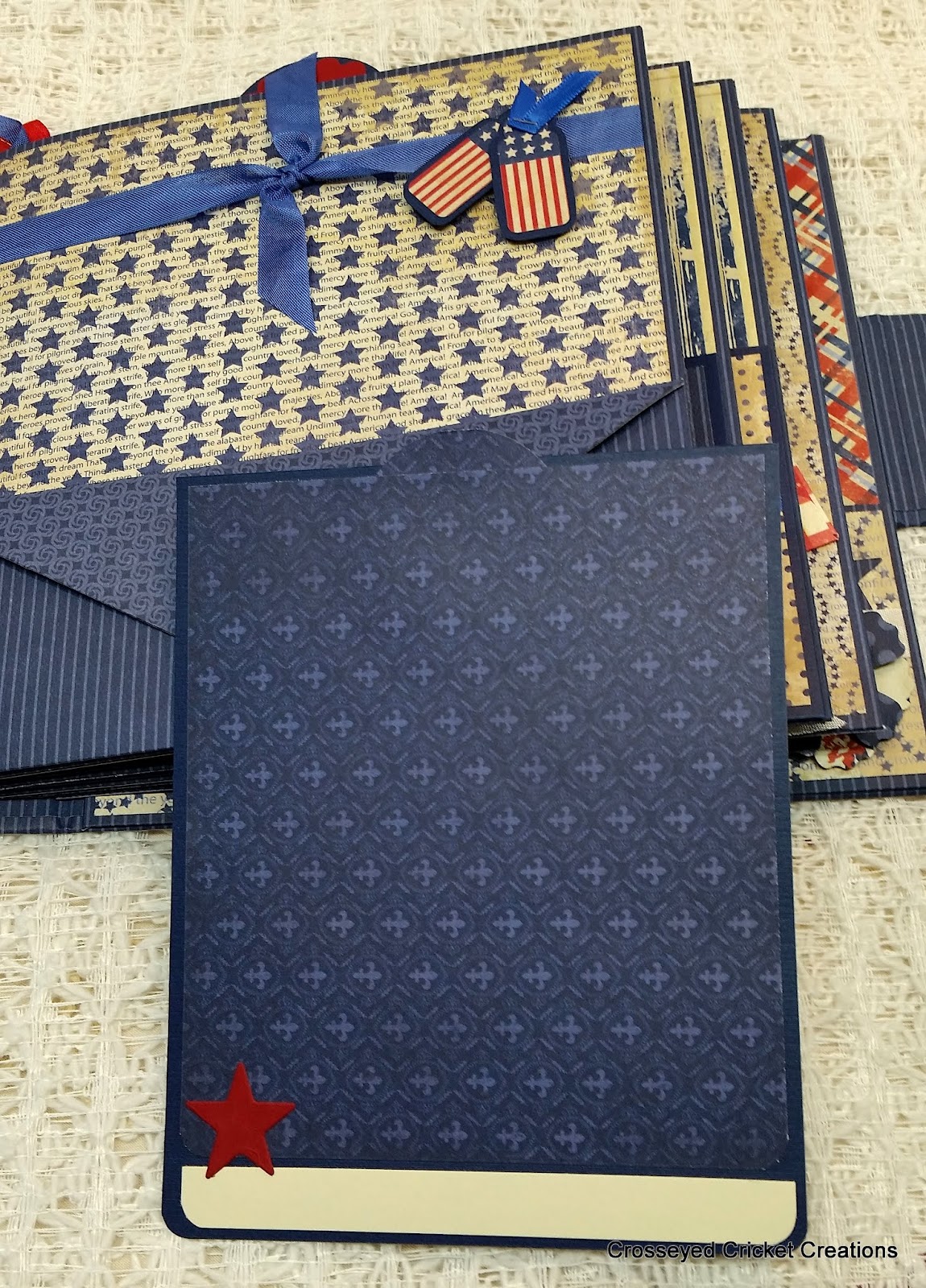 The very roomy booklet from the pocket. This booklet can hold several photos and journaling. More stars cut from some of the pattern cardstock and some red cardstock.