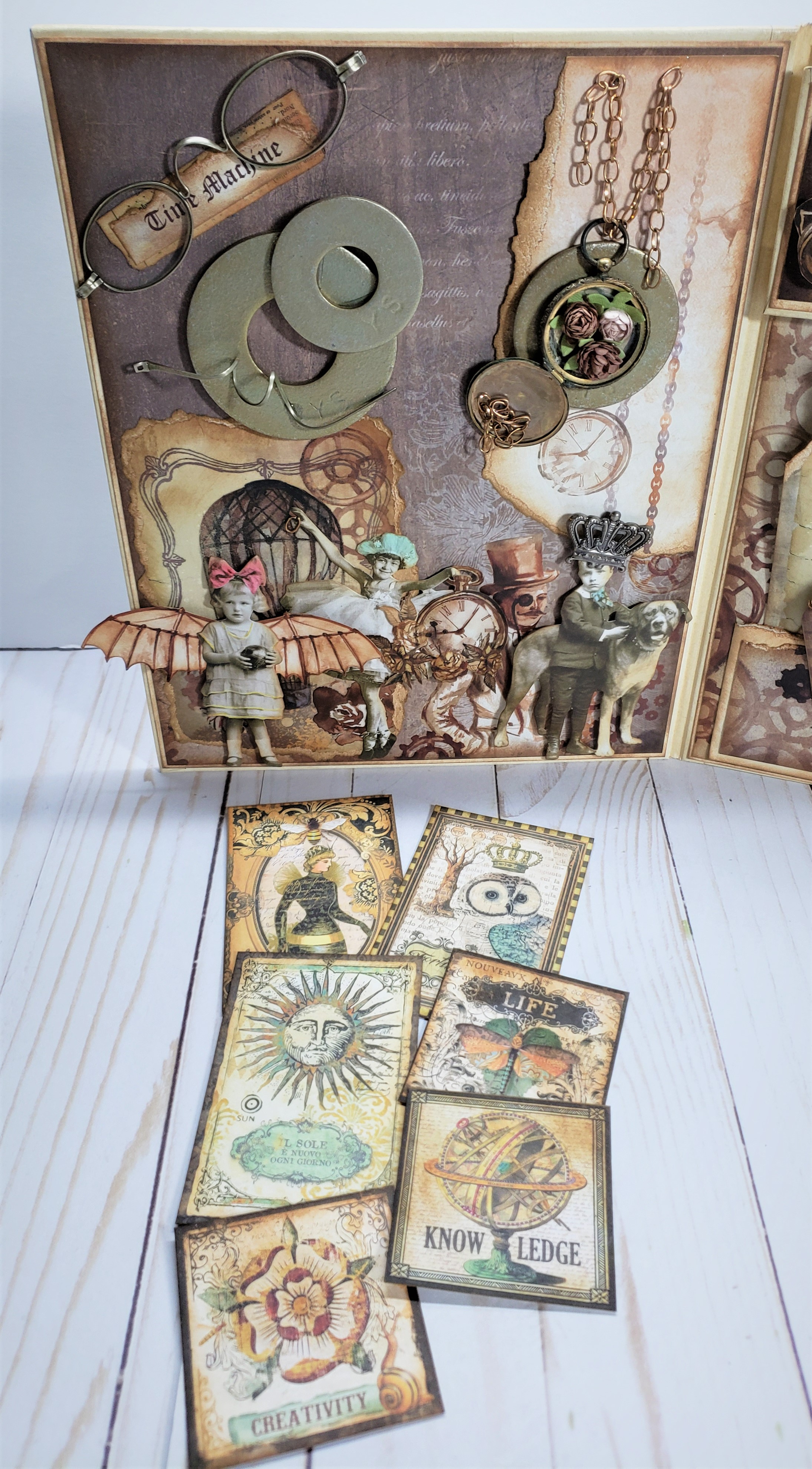 This is my Design Team project for Pear Tree Treasures, and what a cool project it was to do!! A fun and easy popup card to make!! This comes in a kit with everything you need. You can copy the example....or think outside the box and create your own. I tend to think outside the box...and I LOVE dimension...so, my card has several 'pops' using some nice weight chipboard as my pop dots. I inked everything, as I tend to prefer all the edges to be a color rather than just white. Such a fun and easy card to do. This kit even comes with the piece of transparency to add those pieces that appear to float in the air. I will be making an envelope for this one as I chose to extend some of my pieces outside the card area (me thinking outside the box), but if you stay within the confines, it would fit nicely in a 6 x 6 card envelope....but hey, do you and have fun creating!!